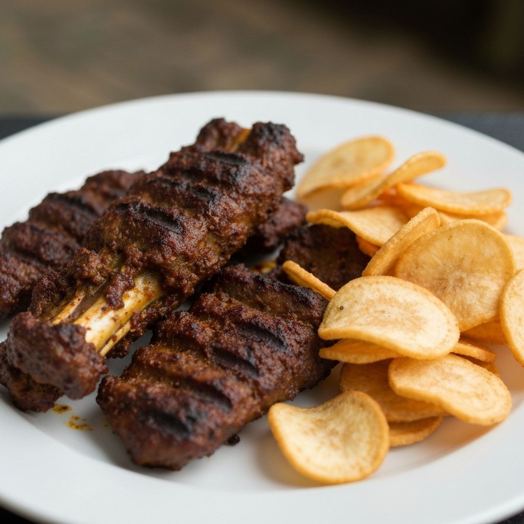Spicy grilled beef suya with our special blend of spices, served with crispy yam chips and pepper sauce.